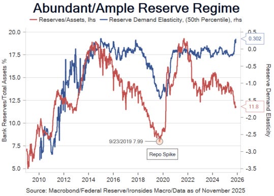 Figure 2: The Fed slowed QT before they met any of their benchmarks, they stopped it early and restarted QE all before there was any meaningful justification. They have fallen in love with the ample reserve regime and playing a central role in the overnight lending market. The Fed has abandoned …