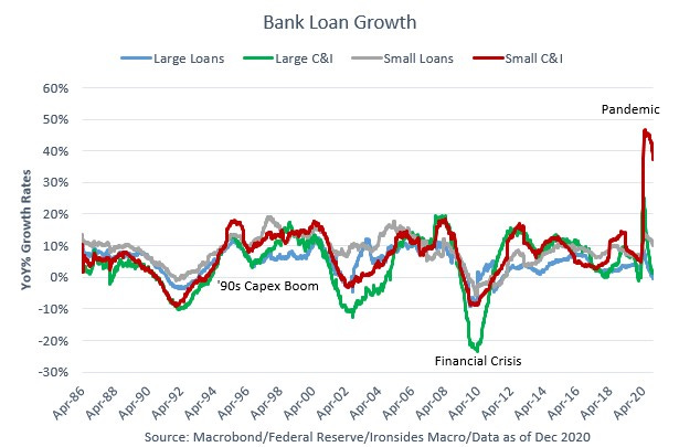 In August 2018, when the Treasury yield curve inverted, the pervasive narrative was that a US recession was likely. In our view, the inversion of the curve reflected a recession in global trade and manufacturing due to the supply chain disruption resulting from the Trump Administration’s 25% tariffs on the majority of Chinese imports. Since the global financial crisis, supply of dollar denominated 'safe' assets grew dramatically as did the supply of trade credit denominated in dollars. Consequently, as global trade growth contracted for the only time when world GDP was positive since China was integrated into global supply chains in the early ‘90s, demand for dollar assets and trade credit was the primary catalyst for the curve inversion. For most of 2019, the Treasury curve and longer-term rates were stable, most of the flattening occurred following the tariff tweets on May 5th and August 2nd. As trade tensions eased and an agreement was reached late in 2019, the curve steepened, business confidence recovered leading us to expect a sharp recovery in global trade and US capital investment. Domestic growth accelerated from trend growth of 2-2 1/4% for most of the ‘10s, to 3% in 2018 after the passage of the Tax Cuts & Jobs Act boosted business confidence, investment increased, greater labor market dynamism boosted real wage growth and productivity, only to slip back to 2% in ‘19 during the trade war. We expected a rebound to 3% in 2020 before the pandemic struck. Our primary concern for investors was a policy normalization risk-off episode in April/May when we expected the Fed to slow their $60 billion per month of bill purchases intended to boost bank reserves and smooth the functioning of the overnight lending market.