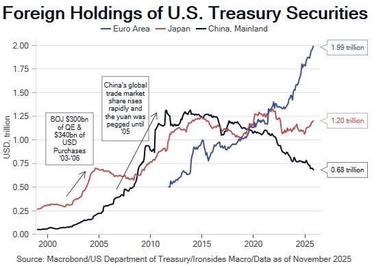 Playback speed×Share postShare post at current timeShare from 0:000:00/0:00Paid episodeThe full episode is only available to paid subscribers of Ironsides Macroeconomics 'It's Never Different This Time'Subscribe to watchToward a New World OrderThe end of the unilateral US reduction of the barriers to trade was inevitable, Davos (wo)man still hasn't come to grips with the new world order.Barry C. KnappJan 26, 2026∙ Paid1ShareThis is a video summary of our January 24 note, Toward a New World OrderFigure 1: In 2018 China’s trade surplus with the US was 5 times as large as Mexico’s, in ‘25 exports to the US fell 20% and are now smaller than Mexico’s. The rebalancing of the massive global current account imbalances is in the early stages.Barry C. KnappManaging PartnerDirector o…This post is for paid subscribersSubscribeAlready a paid subscriber? Sign inIronsides Macroeconomics 'It's Never Different This Time'Macroeconomic and public policy strategyMacroeconomic and public policy strategySubscribeListen onSubstack AppSpotifyRSS FeedAppears in episodeBarry C. KnappRecent EpisodesThe Dog That Didn't BiteJan 20 • Barry C. KnappBroadening BoomJan 12 • Barry C. KnappMerry New YearJan 5 • Barry C. KnappFinancial StatismDec 22, 2025 • Barry C. KnappQE RestartsDec 15, 2025 • Barry C. Knapp2026 Outlook: Duration TighteningDec 8, 2025 • Barry C. KnappPutting Down the Regional RevoltDec 1, 2025 • Barry C. Knapp